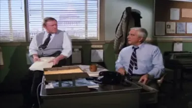 «Полицейский отряд!» (1982) — абсурдистская пародия на серьезные полицейские драмы, где каждая сцена построена на неожиданном визуальном юморе, игре слов и «мертвом» выражении лиц героев. В центре событий — лейтенант Фрэнк Дребин из элитного подразделения, который с одинаковой невозмутимостью ведет допросы, устраивает засады и превращает любую операцию в цепочку нелепых совпадений.